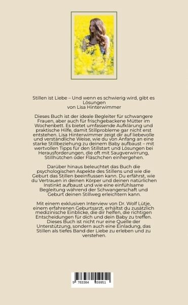Dieses Buch ist dein liebevoller Begleiter rund ums Stillen - von der Schwangerschaft bis weit in die Stillzeit hinein. Lisa Hinterwimmer, Doula, Mütterpflegerin und Stillberaterin, hilft dir mit viel Herz und fachlichem Wissen, Stillprobleme gar nicht erst entstehen zu lassen - und wenn es doch herausfordernd wird, findest du hier einfühlsame und erprobte Lösungen. Du lernst, wie ein gelungener Stillstart gelingt, wie du Saugverwirrung, Schmerzen oder Unsicherheit begegnen kannst und wie Vertrauen in deinen Körper entsteht. Ein exklusives Interview mit Dr. Wolf Lütje, Geburtshelfer mit über 60.000 begleiteten Geburten, ergänzt das Buch um medizinische Tiefe. Dieses Buch schenkt dir Orientierung, stärkt dich in deiner Intuition - und zeigt dir, dass Stillen vor allem eines ist: Liebe.
