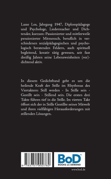 In diesem Gedichtband geht es um die heilende Kraft der Stille im Rhythmus des Viertakters: Still werden - In Stille sein - Gestillt sein - Stillend sein. Die ersten drei Takte führen tief in die Stille. Im vierten Takt öffnet sich der in Stille Gestillte seiner Mitwelt und ihren vielfältigen Herausforderungen mit stillenden Lösungen.