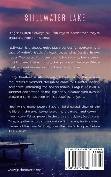 Legends aren't always built on myths. Sometimes they're created to hide dark secrets. Stillwater is a sleepy, quiet place perfect for overcoming a case of writer's block. At least, that's what Jessica Brown hopes. The bestselling novelist's life has recently been turned upside down. If she's honest, she got out of New York City to heal her heart as much as to find her writing muse. Tony Bradford is also looking for respite in the remote mountains of Vermont, though he came to Stillwater seeking adventure. Attending the town's annual Gargun Festival, a summer celebration of the legendary creature who lives in Stillwater Lake has been on his bucket list for years. But while many people have a lighthearted view of the folklore in the area, some know the creature-and town's-true history. When people in the area start dying, Jessica and Tony, together with a documentary filmmaker and a group of teens, try to protect the rest of the town. "Monsters in the Green Mountain" Book 1: Shadow in the Woods Book 2: Silence in the Woods Book 3: Under the Mountain Book 4: The Pact Book 5: Stillwater Lake The entire series can be read as standalone books--there are no cliffhangers at the end and each novel features a different cast of characters. All are set in remote and wilderness locations in Vermont and feature different folkloric creatures. These books are "suspense that turn pages, not stomachs" and readers of books by Frank Peretti, Shirley Jackson, and John Saul will enjoy these campy, creepy stories.