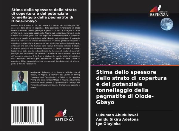 Questo libro è stato scritto per valutare il calcolo del tonnellaggio dello spessore dello strato di copertura della pegmatite mineralizzata di Olode Gbayo utilizzando metodi geologici e geofisici. L'area di indagine si trova all'interno del complesso basale della Nigeria sud-occidentale. L'area di studio è sottesa da rocce gneissiche con pegmatite mineralizzata/vena di quarzo del complesso basale precambriano della Nigeria sud-occidentale. Il presente lavoro di ricerca ha esaminato le tecniche di resistività geofisica utilizzando il metodo di configurazione Schlumberger per fornire una visione della natura del sottosuolo che comporta il calcolo delle riserve delle rocce nell'area di studio. L'indagine geofisica dell'ambiente minerario di Gbayo, villaggio di Olode, Ibadan (nord-est), Nigeria sud-occidentale, ha lo scopo di valutare i parametri geologici che influenzano la redditività economica dell'estrazione mineraria dell'ammasso roccioso. A tal fine, si studiano le caratteristiche di variazione della resistività dell'area per determinare lo spessore dello strato di copertura. Il libro evidenzia le misure precauzionali da adottare nei siti minerari prima e durante l'estrazione.