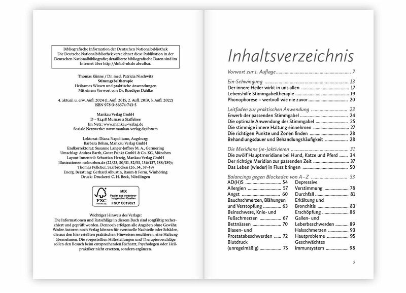Die Gliederung ist super und der Einstieg in die Stimmgabeltherapie daher sehr einfach. Die Haltung der Stimmgabel wird erklärt und auch das Anschlagen sowie der Einsatz an Mensch und Tier. Die gängigsten Akupunkturpunkte sowie die Lage der Meridiane sind im Einband aufgedruckt. So kann man schnell nach den passenden Punkten bzw. der Lage suchen und mit der Stimmgabeltherapie beginnen. Wir haben uns für eine Stimmgabel aus Stahl (136,10 Hz / Jahreston Om) entschieden und diese am Mensch und Pferd (letzteres im Beisein einer Therapeutin) getestet und waren echt begeistert. Der Praxisteil im Buch lädt einfach sofort dazu ein, sofort loszulegen. Auch wenn man keine Blockaden hat – so denkt man – findet die Stimmgabel die Defizite. Bei verspannter Muskulatur wirkt diese lösend und schwingt länger nach. Hier kann man stundenlang ausprobieren und lernt sich und seinen Körper (oder auch den Körper von anderen) besser kennen bzw. zu verstehen. Zudem ist im Buch auch die Organuhr abgebildet (jedes Organ hat eine bestimmte Zeit am Tag) und so kann der passende Meridian / Organ zu seiner Zeit angesprochen werden. Natürlich kann man so auch verstehen, warum man immer zur gleichen Zeit Probleme in bestimmten Bereichen hat. Alles ist sehr gut aufeinander abgestimmt und erklärt. Dem Heimanwender sind keine Grenzen gesetzt. Bei unserem Test am Tier hat das Pferd sehr vorbildlich reagiert und auch wir fanden diese Art der Behandlung sanfter als Akupunktur.