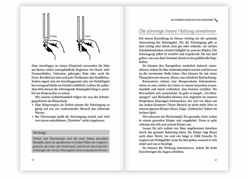 Ich hätte nicht gedacht, dass ich ein Fan von Stimmgabeln werden würde. Ursprünglich wollte ich statt einer Stimmgabel mit Klangschale arbeiten. Aber das geht definitiv nicht! Ich kannte die Stimmgabeln bisher nur vom HNO-Arzt und fand es eher nervig. Auch wenn dort, zu medizinischen Zwecken, einige Akupunkturpunkte angestimmt wurden, so liegt es tatsächlich am Ton der Gabel, denn dieselben Punkte waren mit unserer Om-Stimmgabel sehr beruhigend und angenehm. Besonders krass fand ich, dass man verspannte Muskeln und auch Defizite der Organe mit der Stimmgabel „fühlen“ konnte. Ich bin absolut überzeugt und werde Klangschale gegen Stimmgabel eintauschen! Volle 5 Sterne für ein ganz tolles Buch und eine absolute Empfehlung für jeden, der seine „Verstimmung“ korrigieren möchte!