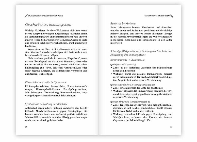 Körpers) und zu den Balancings gegen Blockaden. Diese sind alphabetisch angeordnet und so lassen sich, zu…mehrInhalt: