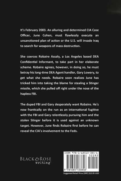 "A superbly written work of thriller fiction!" -Christopher Amato, author of Shadow Investigation ¿¿It's February 2003. An alluring and determined CIA Case Officer, June Cohen, must flawlessly execute an unsanctioned plan of action or the U.S. will invade Iraq to search for weapons of mass destruction. She coerces Robaire Assaly, a Los Angeles based DEA Confidential Informant, to take part in her elaborate scheme. Robaire agrees, however, in doing so, he must betray his long-time DEA Agent handler, Gary Lowery, to get what she needs. Robaire soon realizes June has tricked him into taking the blame for stealing a Stinger missile, which she pulled off right under the nose of the hapless FBI. The duped FBI and Gary desperately want Robaire. He's now frantically on the run as an international fugitive with the FBI and Gary relentlessly pursuing him and the stolen Stinger before it is used against an unknown target. However, June finds Robaire first before he can reveal the CIA's involvement to the Feds.