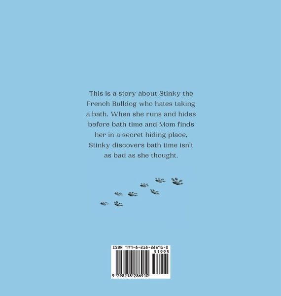 This is a story about Stinky the French Bulldog who hates taking a bath. When she runs and hides before bath time and mom finds her in a secret hiding place, Stinky discovers bath time isn't as bad as she thought.