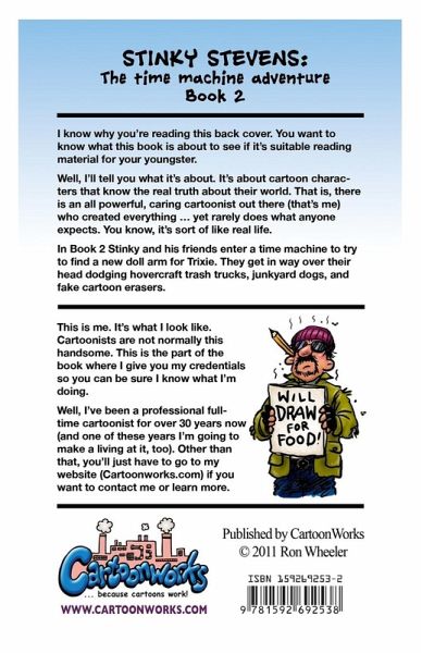 I know why you're reading this. You want to know what this book is about to see if it's suitable reading material for your youngster. Well I'll tell you what it's about. It's about cartoon characters that know the real truth about their world. That is, there is an all powerful, caring cartoonist out there (that's me) who created everything ... yet rarely does what anyone expects. You know, it's sort of like real life. In Book 2 Stinky and his friends enter a time machine to try to find a new doll arm for Trixie. They get in way over their head dodging hovercraft trash trucks, junkyard dogs, and fake cartoon erasers.…mehr