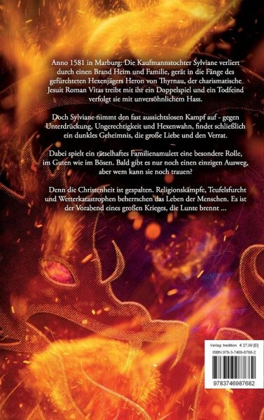 Anno 1581 in Marburg: Die Kaufmannstochter Sylviane verliert durch einen Brand Heim und Familie, gerät in die Fänge des gefürchteten Hexenjägers Heron von Thyrnau, der charismatische Jesuit Roman Vitas treibt mit ihr ein Doppelspiel und ein Todfeind verfolgt sie mit unversöhnlichem Hass.Doch Sylviane nimmt den fast aussichtslosen Kampf auf - gegen Unterdrückung, Ungerechtigkeit und Hexenwahn, findet schließlich ein dunkles Geheimnis, die große Liebe und den Verrat.Dabei spielt ein rätselhaftes Familienamulett eine besondere Rolle, im Guten wie im Bösen. Bald gibt es nur noch einen einzigen Ausweg, aber wem kann sie noch trauen?Denn die Christenheit ist gespalten. Religionskämpfe, Teufelsfurcht und Wetterkatastrophen beherrschen das Leben der Menschen. Es ist der Vorabend eines großen Krieges, die Lunte brennt ...Ein abenteuerlicher historischer Roman über Verfolgung, Selbstbehauptung und Rache, und darüber, dass Irrwege manchmal auch Wege sind.(Der Roman besteht aus zwei Teilen; mit Band 2 ist die Geschichte abgeschlossen).