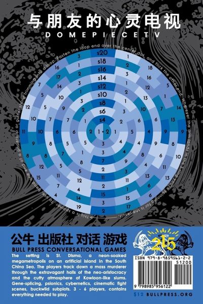 A conversational game tracking down a depraved patrician through a lawless metropolis on an artificial island in the South China Sea. Gene splicing, cybernetics, criminal underworld, political violence etc. Written specifically for first-timers brand new to the hobby. Uses the DomepieceTV system.
