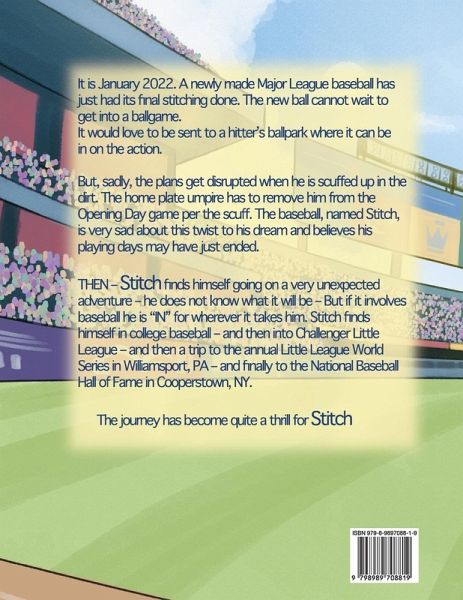 A fun children's story about the beloved National Pastime game of baseball, the national program of Little League for young players to participate, and the inclusivity of its Challenger division where children with Special Needs can play in the game that they too love dearly. Stitch is an animated baseball who travels through Major League Baseball, Collegiate Baseball and Challenger Little League. He is wanting so much to be in the BIG LEAGUES - but finds his true happiness in the Challenger Little League program.