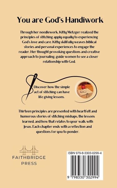 Who knew needlework principles could be applied to enhance your spiritual life? Through her book Stitching a Beautiful Life. Thirteen needlework principles to bring you closer to God, award-winning author Kitty Metzger demonstrates just that. Kitty skillfully weaves Biblical stories with personal experiences to engage the reader. Her enjoyable stories lead to spiritual truths and then to thought-provoking questions. Discover how the simple act of stitching can have life-giving lessons. In this book you will find:Be prepared to stitch-leads to the lesson of the five wise and the five foolish virgins Tie up loose threads-illustrates the consequences of leaving issues unresolved Follow a pattern-examine the example of Jesus's life Be willing to rip out mistakes-teaches forgiveness of each other. These and nine other principles are presented with heartfelt and humorous stories of stitching mishaps, the lessons learned, and how that relates to your walk with Jesus. Each chapter ends with a reflection and questions for you to ponder.