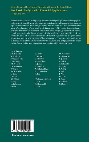 Stochastic analysis has a variety of applications to biological systems as well as physical and engineering problems, and its applications to finance and insurance have bloomed exponentially in recent times. The goal of this book is to present a broad overview of the range of applications of stochastic analysis and some of its recent theoretical developments. This includes numerical simulation, error analysis, parameter estimation, as well as control and robustness properties for stochastic equations. The book also covers the areas of backward stochastic differential equations via the (non-linear) G-Brownian motion and the case of jump processes. Concerning the applications to finance, many of the articles deal with the valuation and hedging of credit risk in various forms, and include recent results on markets with transaction costs.