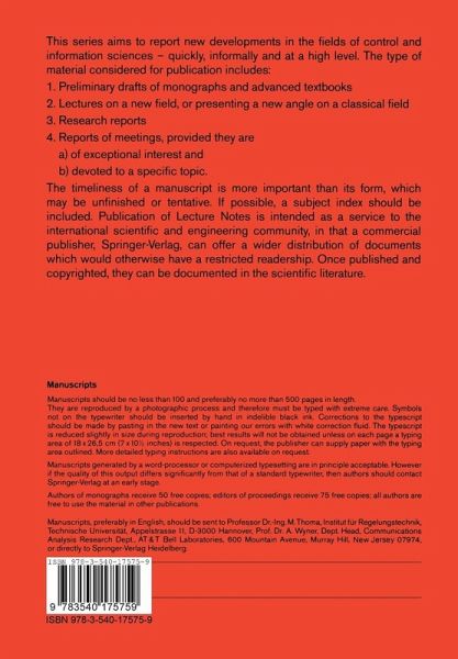 Optimization of drugs' action.- Nonlinear stochastic evolution equations in Hilbert spaces.- Equivalence and reversibility of point processes.- Galerkin approximation for optimal linear filtering of infinite dimensional linear systems.- On conditionally linear filtering, control, and coding.- Martingale problems for controlled processes.- Estimation of immune response model parameters based on maximum likelihood method.- Approximate impulse control of partially observed systems.- The averaging principle for a class of stochastic algorithms in adaptive filtering.- Asymptotic study of estimation problems with small observation noise.- Filtering on manifolds.- Finite-dimensionality in discrete-time nonlinear filtering from a bayesian statistics viewpoint.- On the innovations problem for a finite additive white noise approach to nonlinear filtering.- Classification of discretization schemes of diffusions according to an ergodic criterium.