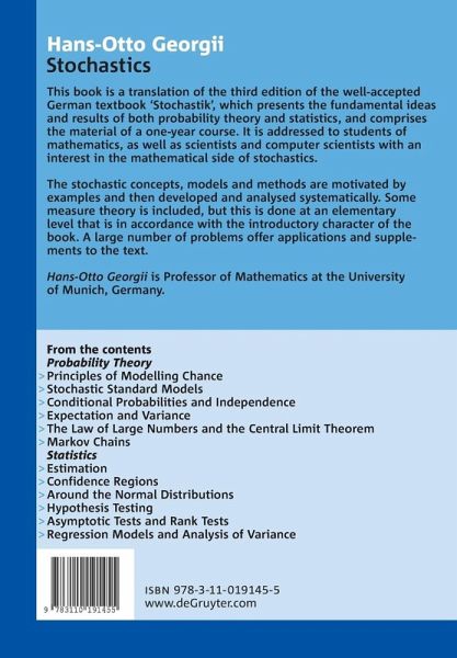 This book is a translation of the third edition of the well accepted German textbook 'Stochastik', which presents the fundamental ideas and results of both probability theory and statistics, and comprises the material of a one-year course. The stochastic concepts, models and methods are motivated by examples and problems and then developed and analysed systematically.