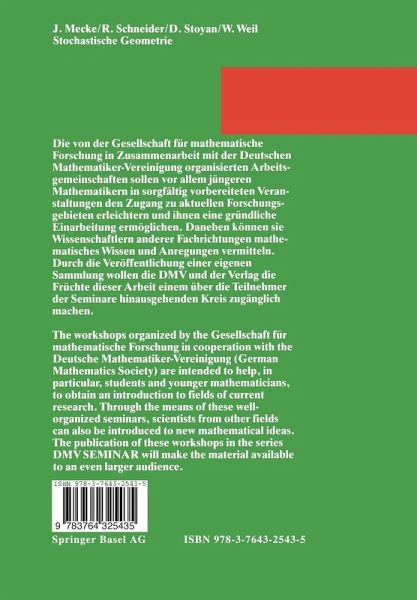 Vom 1. bis 8. Oktober 1989 fand im Kloster Neresheim das DMV-Seminar "Stochastische Geometrie" statt. Das Ziel dieser Veranstaltung war es, die Stochastische Geometrie, die sich in den letzten Jahren lebhaft entwickelt hat und die auch für Anwendungen in der Bildverarbeitung, der Stereologie und der Statistik von räumlichen Daten eine grundlegende Bedeutung bekommen hat, einem breiteren Kreis von Mathematikern nahe zu bringen. Dabei sollte auch das Zusammenwirken geometrischer Ideen und stochastischer Modelle exemplarisch aufgezeigt werden. Die Vorträge über Integralgeometrie (R. Schneider), zufällige Mengen und geometrische Punktprozesse (W. Weil), zufällige Mosaike und Ebenenprozesse (J. Mecke), Kenngrößen geometrischer Strukturen und Statistik von Punktprozessen, zufälligen Mengen und Mosaiken (D. Stoyan) wurden ergänzt durch speziellere Themen (zufällige Geraden, allgemeine Poissonprozesse, Boolesche Modelle, Punkt prozeßmodelle ), Computer-Simulationen und Fallbeispiele. Der folgende Text enthält die ausgearbeiteten Vorträge, wobei einige der Ergänzungen eingearbeitet wurden. Eine Einführung in die Theorie allgemeiner Poissonprozesse (J. Mecke) wurde als Anhang A aufgenommen. Es erschien uns nicht sinnvoll, die vollständigen Programme zu den Simulationen abzudrucken. Wir haben aber für einige Grundstrukturen der Stochastischen Geome trie Simulationsprogramme als Anhang B beigefügt. Bilder solcher Simulationen sowie Bilder von realen geometrischen Daten und zufälligen geometrischen Strukturen aus der Praxis sind in den Text aufgenommen worden. Die Programme stammen in der vorliegenden Form von Herrn Dipl.-Math. H. Fallert, der auch einen großen Teil der Simulationen durchgeführt hat. Die Reinschrift der Manuskripte wurde von Frau U. Petersvorgenommen. Beiden 6 möchten wir an dieser Stelle für ihre Mithilfe danken.