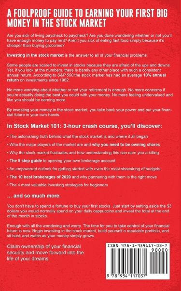 A Foolproof Guide to Earning Your First Big Money in The Stock Market Have you noticed that more and more people in your life are constantly talking about the stock market? Is this conversation appearing at all of your recent social gatherings with friends and family? If so, you're not alone - Investing in the stock market is one of the smartest things you could do in 2020. Getting started has never been easier. Are you sick of living paycheck to paycheck? Are you done wondering whether or not you'll have enough money to pay rent? Aren't you sick of eating fast food simply because it's cheaper than buying groceries? Investing in the stock market is the answer to all of your financial problems. Some people are scared to invest in stocks because they are afraid of the ups and downs. Yet, if you look at the numbers, there is barely any other place with such a consistent annual return. According to S&P 500 the stock market has had an average 10% annual return on investments since 1962. No more worrying about whether or not your retirement is enough. No more concerns if you're actually doing the best you could with your money. No more feeling undervalued and like you should be earning more. By investing your money in the stock market, you take back your power and put your financial future in your own hands. In Stock Market 101: 3-hour crash course, you'll discover: ¿ The astonishing truth behind what the stock market is and where it all began ¿ Who the major players of the market are and why you need to be owning shares ¿ Why the stock market fluctuates and how understanding this can earn you a killing ¿ The 5 step guide to opening your own brokerage account ¿ An empowered outlook for getting started with even the most shoestring of budgets ¿ The 10 best brokerages of 2020 and why partnering with them is the right move ¿ The 4 most valuable investing strategies for beginners ... and so much more. Even the most basic understanding of the stock market can make you a killing. Just look at the story of Shehryar Shaukat, a 22-year-old businessman from Pakistan, who started investing when some visa complications kept him out of Canada and going to college. The young man simply hopped on his computer and started making some trades to keep himself busy, now he's filthy rich and living the life of his dreams. You don't have to spend a fortune to buy your first stocks. Just start by setting aside the $3 dollars you would normally spend on your daily cappuccino and invest the total at the end of the month in stocks. Enough with all the wondering and worry. The time for you to take control of your financial future is now. Begin investing in the stock market, build yourself a reputable portfolio, and sit back and watch as your money simply grows. If you're ready to claim ownership of your financial security and move forward into the life of your dreams, then scroll up and click the "Add to Cart" button right now.