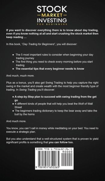 If you want to discover everything there is to know about day trading, even if you know nothing at all and start crushing the stock market then keep reading … Are you looking for a way to get the extra pennies to pay for your next vacation? The first thing everyone needs to start making money is a plan. But, as you know, there is no such thing as a get-rich-quick scheme. There is, however, a proven way of creating serious profits that can be done directly from the comfort of your own home...or sitting right at the beach. Stock market investing doesn¿t have to take weeks, month or years. There is a unique shortcut called day trading. But ... Do you even know what 24h trading is? It is simpler than you think. You don't need a college degree to understand how to create wealth through day trading. Even better, you don't need any qualifications at all. But you do need to be someone who is ambitious enough to take action. Once you've discovered what day trading is and what the best methods are to always be one step ahead of everyone else, then there's nothing to stop you from becoming the next Wolf of Wall Street. But before you can start crushing it through day trading, there's one simple thing you need to do first. Create a plan. Then you can take the plunge and make your financial dreams a reality. ¿¿ SOLD OVER 10,000 COPIES ACROSS VARIOUS MARKETS ¿¿ In this book, "Day Trading for Beginners", you will discover: The 5 most important rules to consider when beginning your day trading journey The first thing you need to check every morning before you start trading The essential tips that every beginner needs to know The types of stocks that will make you money And much, much more. Plus as a bonus, you'll also get Swing Trading to help you capture the right swing in the market and create wealth with the most beginner-friendly type of trading. In "Swing Trading" you'll discover: A step-by-step plan to succeed with swing trading from the get-go 4 different kinds of people that will help you beat the Wolf of Wall Street The beginners trading dictionary to keep the bear away and take the bull by the horns The latest stock trends and how to predict the next buzz before anyone else The most reliable stocks and how to invest in a $5 billion company And much more. You know, you can¿t call in money while meditating on your bed. You need to execute a strategic plan. But you also understand that a well-structured system that is proven to yield significant profits is something that you can follow too. You don't have to have a profound intellect. You just need to be willing to create a plan and follow it. Then you can start trading and see long-lasting results. If you want to discover day trading for ordinary people, then you need this book today!