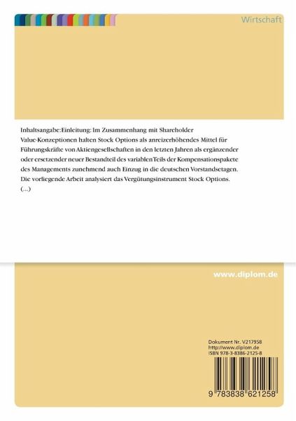 Im Zusammenhang mit Shareholder Value-Konzeptionen halten Stock Options als anreizerhöhendes Mittel für Führungskräfte von Aktiengesellschaften in den letzten Jahren als ergänzender oder ersetzender neuer Bestandteil des variablen Teils der Kompensationspakete des Managements zunehmend auch Einzug in die deutschen Vorstandsetagen.