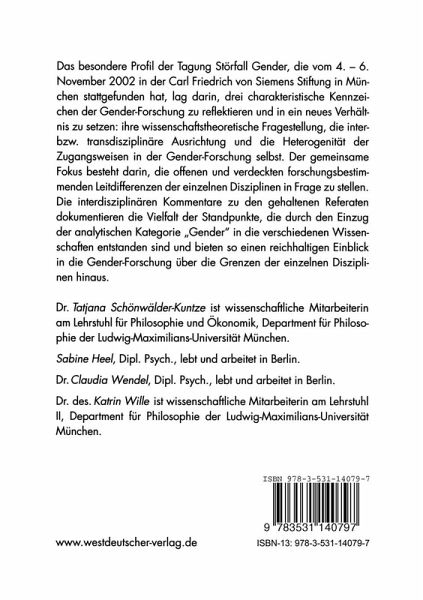 Das besondere Profil dieser Publikation liegt darin, drei charakteristische Kennzeichen der Gender-Forschung zu reflektieren und in ein neues Verhältnis zu setzen: ihre wissenschaftstheoretische Fragestellung, die inter- bzw. transdisziplinäre Ausrichtung und die Heterogenität der Zugangsweisen in der Gender-Forschung selbst. Der gemeinsame Fokus besteht darin, die offenen und verdeckten forschungsbestimmenden Leitdifferenzen der einzelnen Disziplinen in Frage zu stellen. Die interdisziplinären Kommentare zu den Beiträgen dokumentieren die Vielfalt der Standpunkte, die durch den Einzug der analytischen Kategorie 'Gender' in die verschiedenen Wissenschaften entstanden sind und bieten so einen reichhaltigen Einblick in die Gender-Forschung über die Grenzen der einzelnen Disziplinen hinaus.