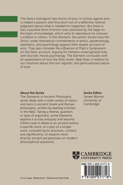 This Element shows the Stoics' wider theoretical commitments in ethics, epistemology, aesthetics, and psychology. It concludes with an assessment of how the Stoic erotic ideal fares in relation to our intuitions about the non-egoistic and particularized nature of love.