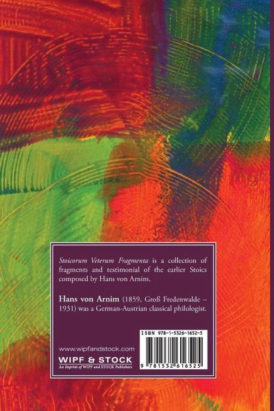 Stoicorum Veterum Fragmenta is a collection of fragments and testimonial of the earlier Stoics composed by Hans von Arnim.