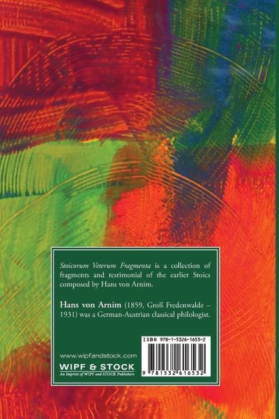 Stoicorum Veterum Fragmenta is a collection of fragments and testimonial of the earlier Stoics composed by Hans von Arnim.