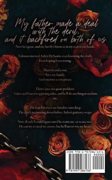 My father made a deal with the devil, and it backfired on both of us. Now he's gone, and my family's future is in my traitorous hands. I almost married Aiden DeSantis, even knowing the truth. Even hoping I was wrong. I have to end a war. Save my family. And uncover a conspiracy. There's just one giant problem: Aiden and I are on opposing sides, and he'll do anything to reclaim me. The hate between our families runs deep. The clock is counting down before Aiden's patience snaps. Now, if only I could figure out if he wants me, or to use me... He can try to steal my crown, but he'll never win my heart. The DeSantis Mafia Series is dark mafia romance with enemies to lovers themes. Stolen Crown is book TWO of Aiden and Gemma's duet. Reader discretion is advised.