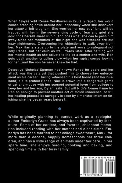 When 19-year-old Renee Westhaven is brutally raped, her world comes crashing down around her...especially when she discovers her attacker left pregnant. She worries her new boyfriend will be trapped with her in the never-ending cycle of fear and grief she now finds herself mired within, and does what she can to push him away since her memories of the night she was attacked are but hazy nightmares. Overcoming her objections to walk away from her, Max Harris steps up to the plate and vows to safeguard not only Renee, but her child as well. Years later, after battling with her mental health as she adjusts to life as a mother and wife, Ren gets dealt another crippling blow when her rapist comes looking for her...and the son he never knew he had. Detective Nicholas Spencer has known Renee for years and her attack was the catalyst that pushed him to choose law enforcement as his career. Having witnessed his best friend (and her husband) die to protect Renee, Nick is drawn into a dangerous game of cat-and-mouse with her scorned potential lover from college to keep her and her son, Dylan, safe. But will Nick's former flame for Ren be enough to prevent another act of stolen innocence, or will her healing process be savagely broken by a monster intent on finishing what he began years before?
