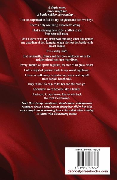 A single mom. A new neighbor. A battle neither saw coming ... I'm not supposed to fall for my neighbor and her two boys. There's only one thing I should be doing ... That's learning how to be a father to my four-year-old niece. I don't know what my sister was thinking when she named me guardian of her daughter when she lost her battle with breast cancer. It's a rocky start. But eventually, Emma and her boys welcome us to the neighborhood and into their lives. Every minute we spend together, the five of us grow closer. Until a night of passion leads to my worst nightmare. I have to walk away to protect my niece and myself from further heartbreak. Only, it isn't so easy to let her and the boys go. Somehow, we'd become like a family. And now, it may be too late to win back the trust I've broken. Grab this steamy, emotional, stand-alone contemporary romance about a single mom giving her all for her kids and a single uncle learning how to be a dad while coming to terms with devastating losses.