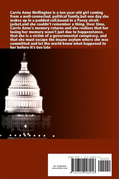 Carrie Anne Wellington is a ten-year-old girl coming from a well-connected, political family,but one day she wakes up in a padded-cell,bound in a Posey strait-jacket,and she couldn't remember a thing. Over time,Carrie Anne's memory returns and she realizes that her losing her memory wasn't just due to happenstance, that she is a victim of a governmental conspiracy, and that she must escape the insane asylum where she was committed and let the world know what happened to her before it's too late