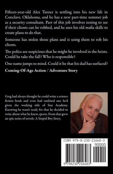 Fifteen-year-old Alex Turner is settling into his new life in Conclave, Oklahoma, and he has a new part-time summer job as a security consultant. Part of this job involves testing to see if their clients can be robbed, and he uses his old mafia skills to create plans to do that. Someone has stolen those plans and is using them to rob his clients. The police are suspicious that he might be involved in the heists. Could he take the fall? Who is responsible? One name jumps to mind. Could it be that his dad has surfaced? Coming-Of-Age Action / Adventure Story