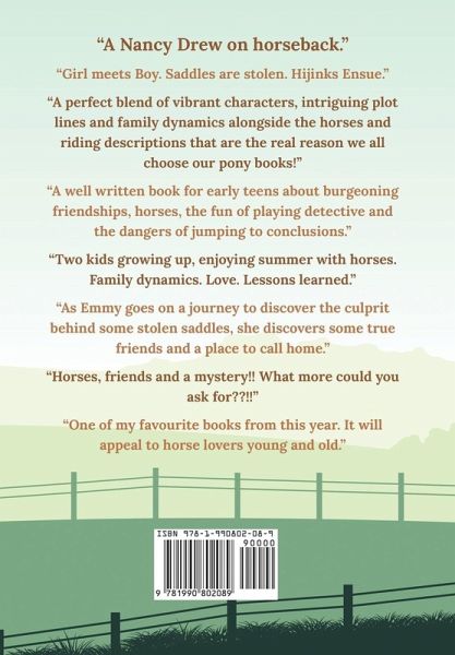 When the first saddle disappeared, Emmy wasn't too worried. After all, the tack room at Mystery Stables isn't always the most organized, and riding in the creek is better without a saddle anyway. But when it turns out the saddle was a Butet - in other words way more expensive than Emmy or her Aunt Jewel can afford to pay for - and when more saddles start going missing from other stables, Emmy knows she has to do something. Emmy wants to stay in Mystery Hollow. She wants to ride feisty new mare, Solace, alongside her brand-new best friend, Baxter. She wants, for once, to stop moving - she even wants to go to school: Mystery Hollow High School. But with the saddle thief moving onto bigger, more dangerous offences, Emmy's afraid Mystery Stables might not survive the crime spree, leaving her, and her favourite people and horses, without the home they love.