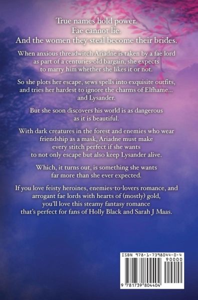 True names hold power. Fae cannot lie. And the women they steal become their brides. When anxious threadwitch Ariadne is taken by a fae lord as part of a centuries-old bargain, she expects to marry him whether she likes it or not. No matter what chemistry she has with her captor, she's desperate for freedom and a life under her own control. She won't give in easily. Although Lysander claims he doesn't want her hand in marriage but for its skill with needle and the threads of magic, everyone knows the fae are not to be trusted. So she plots her escape, sews spells into exquisite outfits, and tries her hardest to ignore the charms of Elfhame... and Lysander. But she soon discovers his world is as dangerous as it is beautiful. With dark creatures in the forest and enemies who wear friendship as a mask, Ariadne must make every stitch perfect if she wants to not only escape but also keep Lysander alive. Which, it turns out, is something she wants far more than she ever expected. If you love feisty heroines, enemies-to-lovers romance, and arrogant fae lords with hearts of (mostly) gold, you'll love this steamy fantasy romance that's perfect for fans of Holly Black and Sarah J Maas. Read Stolen Threadwitch Bride today and escape on a fairy tale adventure where hate turns to love, a down-on-her-luck heroine discovers true power, and someone names a hellhound Fluffy.