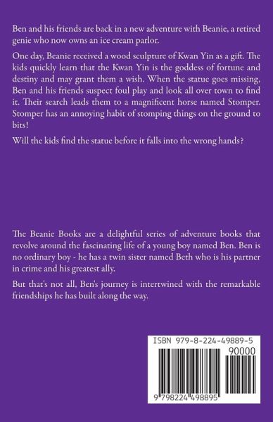 Ben and his friends are back in a new adventure with Beanie, a retired genie who now owns an ice cream parlor. One day, Beanie received a wood sculpture of Kwan Yin as a gift. The kids quickly learn that the Kwan Yin is the goddess of fortune and destiny and may grant them a wish. When the statue goes missing, Ben and his friends suspect foul play and look all over town to find it. Their search leads them to a magnificent horse named Stomper. Stomper has an annoying habit of stomping things on the ground to bits! Will the kids find the statue before it falls into the wrong hands?