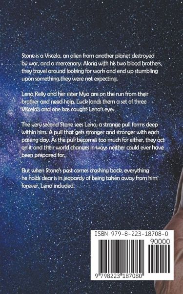 Stone is a Viscela, an alien from another planet destroyed by war, and a mercenary. Along with his two blood brothers, they travel around looking for work and end up stumbling upon something they were not expecting. Lena Kelly and her sister Mya are on the run from their brother and need help. Luck lands them a set of three Viscela's and one in particular has caught Lena's eye. The very second Stone sees Lena a strange pull begins to form deep within him. A pull that gets stronger and stronger with each passing day. When the pull becomes too much for either one and they act on it their world is changed in ways neither could ever have been prepared. When Stone's past comes crashing back however, everything he holds dear is in jeopardy of being taken away from him forever. Lena included.