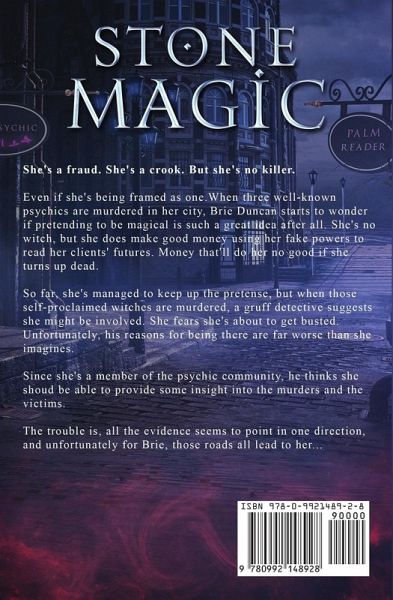I might be one fraud of a psychic, but I'm no killer. As a kid, I begged the cops to save me from my mother-the dark witch who raised the dead in our basement. Now that she's gone, I've turned the house that once terrified me into a haven, pretending to be psychic to help others haunted by their pasts. No harm, no foul...until Detective Garder barges into my shop, all confidence and sharp eyes, like he can see through every lie I've ever told. He's investigating the ritualistic murders of the real clairvoyants in town, and his calm, collected presence is unnerving-especially when I catch a glimmer of something dark and wolfish beneath that cool exterior. Now I face an impossible decision, because keeping quiet could make me the killer's next target, but confessing to my lies would tank my only means of survival... But when they find my mother's amulet at another murder scene, I'm moved from potential victim to prime suspect. And as if being in the detective's crosshairs isn't bad enough, I start sleepwalking to blood-covered crime scenes. Turns out, I might not be a fraud after all, painting me as the coven's next target. Stone Magic is the first book in a wolf shifter/witch urban fantasy mystery with a nice, slow burn romance. Each book should be read in order to enjoy the best experience. Some mild language and adult situations/themes.