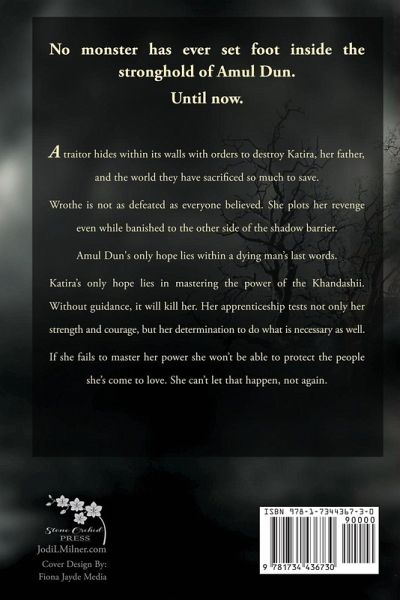 Winner - Silver Quill for Young Adult FantasyNo monster has ever set foot inside the stronghold of Amul Dun. That is about to change. A traitor hides within its walls with orders to destroy Katira, her father, and the world they have sacrificed so much to save. It seems Wrothe is not as defeated as everyone believed. She plots her revenge even while banished to the other side of the shadow barrier. Amul Dun's only hope lies within a dying man's last words. Katira's only hope lies in mastering the power of the Khandashii. Without guidance, it will kill her. Her apprenticeship tests not only her strength and courage, but her determination to do what is necessary as well. If she fails to master her power she won't be able to protect the people she's come to love against Wrothe. She can't let that happen, not again. The Shadow Barrier Trilogy Book 1 - Stonebearer's Betrayal Book 2 - Stonebearer's Apprentice Book 3 - Stonebearer's Redemption *Also available in an ebook omnibus with bonus material*
