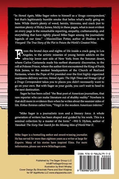 "In Stoned Again, Mike Sager refers to himself as a "drugs correspondent," but that's legitimately humble smoke that belies what's really going on here. While there's plenty of weed, heroin, ‘shrooms, and crack (not to mention plenty of Ricky James, bitch) in these pages, what is most evident on every page is the remarkable reporting, empathy, craftsmanship, and storytelling that have rightly placed Mike Sager among the journalistic legends of our time." --Maximillian Potter, author, Shadows in the Vineyard: The True Story of the Plot to Poison the World’s Greatest Wine From the brutal days and nights of life inside a crack gang in Los Angeles, to the artistic miseries of young heroin addicts on the ultra-hip lower east side of New York; from the Sonoran desert where Carlos Castaneda made his earliest shamanic discoveries, to the cell at Folsom Prison where the author first encountered the King of Funk, Rick James, to the modest headquarters of the Church of Realized Fantasies, where the Pope of Pot presided over the first highly organized marijuana delivery service, Stoned Again: The High Times and Strange Life of a Drugs Reporter takes you to places you didn’t necessarily want to go on your own. But with Sager as your guide, you can’t wait to head to the next destination. Sager has been called "the Beat poet of American journalism, that rare reporter who can make literature out of shabby reality." Nowhere is that skill more in evidence than when he writes about the seamier sides of life. Kirkus Reviews called him "Virgil in the modern American inferno." "Mike Sager is a journalistic icon and a literary force. A whole generation of writers has been shaped and guided by his work. This is a seminal collection by a master of the form." --Wil S. Hylton, author, Vanished: The Sixty-Year Search for the Missing Men of World War II