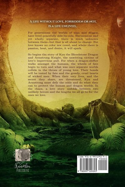 For generations the worlds of man and dragon have lived peacefully side-by-side. Harmonious and yet wholly separate, there is much unknown between them--but that is all about to change. For love knows neither color nor creed, and where there is passion, heat, and desire, it will spark. So begins the story of Kya the Bloodstone Dragon and Armstrong Knight, the unwitting victims of love's impervious pull. For when a dragon-shifter walks amongst the humans, the wheels of fate begin to turn and what was once separate worlds collide in the throes of young love. Their bonds will be tested by fate and the greedy, cruel hearts of wicked men. When their very lives, and the secret they share, are threatened, Kya and Armstrong must defy the odds and do what they can to protect the human and dragon worlds. In the chaos, a love story unfolds between two unlikely heroes and the lengths we all go to for the ones we love.