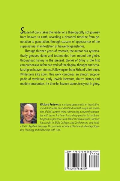 Stones of Glory takes the reader on a theologically rich journey from heaven to earth, revealing a historical timeline from generation to generation, through seasons of appearances of the supernatural manifestation of heavenly gemstones. Through thirteen years of research, the author has systematically grouped dates and testimonies from around the globe, throughout history to the present. Stones of Glory is the first comprehensive reference work of theological thought and scholarship on heaven stones. Following on from Richard's first book, Wilderness Like Eden, this work combines an almost encyclopedia of revelation, early Jewish literature, church history and modern encounters. It's time for heaven stones to cry out in glory.