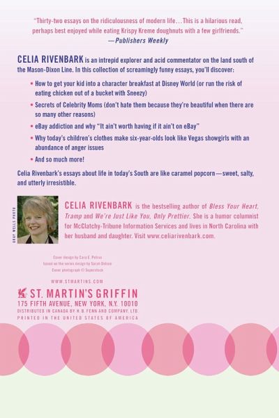 Celia Rivenbark is an intrepid explorer and acid commentator on the land south of the Mason-Dixon Line. In this collection of screamingly funny essays, you'll discover: *How to get your kid into a character breakfast at Disney World (or run the risk of eating chicken out of a bucket with Sneezy) *Secrets of Celebrity Moms (don't hate them because they're beautiful when there are so many other reasons) *ebay addiction and why "It ain't worth having if it ain't on ebay" *Why today's children's clothes make six-year-olds look like Vegas showgirls with an abundance of anger issues *And so much more! Celia Rivenbark's essays about life in today's South are like caramel popcorn---sweet, salty, and utterly irresistible.