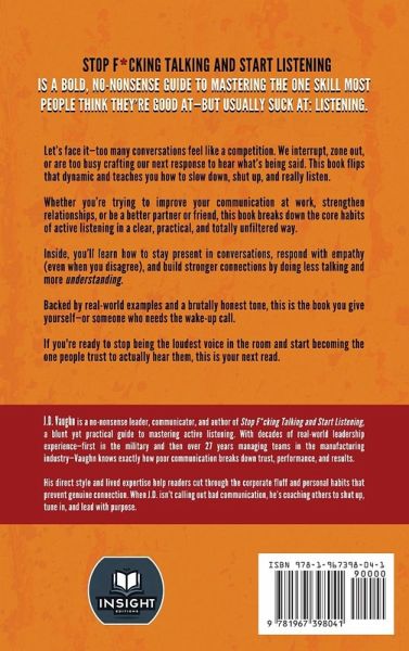 Discover the power of listening and transform your conversations-even if staying focused has always been a challenge. Struggle to stay present during conversations? Feel misunderstood or frustrated when communication breaks down? You're not alone-and there's a better way forward. Stop F*cking Talking and Start Listening gives you the tools to become a more intentional, focused, and impactful communicator by mastering active listening. Inside, you'll learn how to:Improve your focus during any conversation Manage emotions so they don't derail your message Give and receive feedback without triggering defensiveness Build trust and deeper connections Recognize and overcome personal listening biases Stay fully present using mindfulness techniques Resolve conflict through calm, clear dialogue Interpret body language-even across cultures Develop empathy and emotional intelligence Identify poor listening habits-and fix them Navigate digital communication like a pro Balance speaking and listening in meaningful ways Apply simple exercises for instant improvement Decode tone and nonverbal cues Track your progress with a personalized plan Whether you're a leader, partner, colleague, or friend, this book offers practical strategies you can apply immediately. Forget the guesswork-this is direct, no-fluff guidance for anyone ready to improve how they listen and connect. Ready to stop talking and start truly listening?