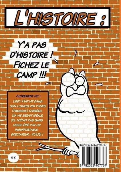 Eddy Piaff, l'oiseau solitaire, n'apprécie rien de plus que sa tranquillité. Cependant, un problème persistant se dresse devant lui : le regard du lecteur. À chaque page, vous découvrirez des scènes de la vie quotidienne de ce drôle d'oiseau, confronté à la constante intrusion de votre regard. Avec ingéniosité et créativité, Eddy imagine des stratagèmes farfelus pour échapper à l'attention non sollicitée, allant même jusqu'à inventer une machine à voyager dans le temps. Malgré son caractère irascible, Eddy Piaff finira par gagner votre coeur. Vous serez touché par ses échecs répétés et sa persévérance à préserver un bien devenu si rare: la vie privée.
