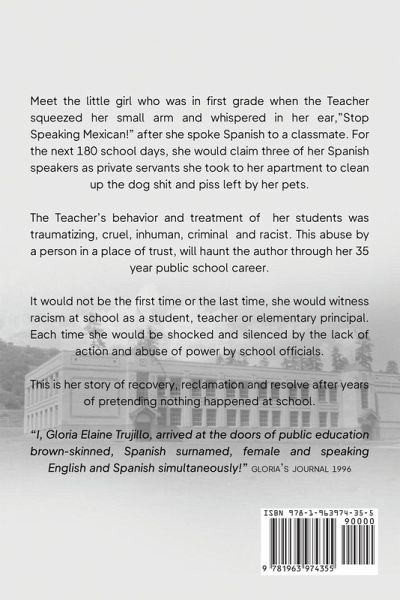 An autobiography detailing the long-term effects of childhood trauma from age six to retirement. This child who became a bilingual educator would experience the "triggers" of 1st grade throughout her professional career. Meet the student who was made to comply with the racist practices of her first-grade teacher.