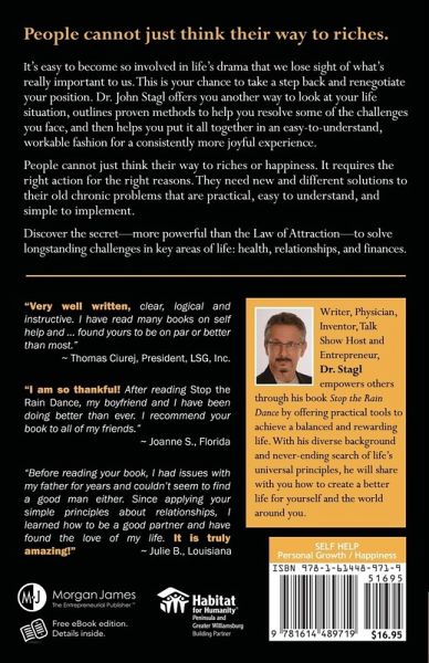 Stop the Rain Dance presents a unique view of life to help anyone attain greater happiness and offers proven tools to end the cycles of chronic failure. A truly inspiring book for anyone seeking self-help in their relationships, their health, or their finances. It's easy to become so involved in life’s drama that we lose sight of what’s really important to us. This is your chance to take a step back and renegotiate your position. Dr. John Stagl offers you another way to look at your life situation, outlines proven methods to help you resolve some of the challenges you face, and then helps you put it all together in an easy-to-understand, workable fashion for a consistently more joyful experience.