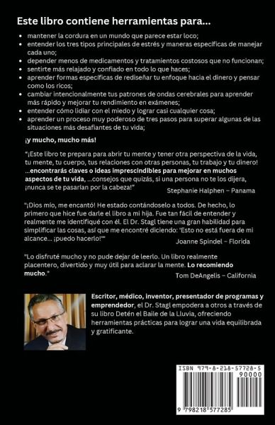 ¡Descubre qué te ha estado frenando para alcanzar tu verdadero potencial! Este libro es único e inspirador, lleno de herramientas poderosas que transforman vidas y resuelven desafíos de larga data en áreas clave de tu vida: salud, relaciones y finanzas. Es directo, fácil de entender y efectivo. Todos nos involucramos tanto en el drama de la vida que es muy fácil perder de vista lo que realmente es importante para nosotros. Este libro tiene mucho sentido. Detén el Baile de la Lluvia te ofrece la mejor manera de analizar tu situación de vida y aprovechar métodos comprobados que te ayudarán a resolver muchos de los desafíos que enfrentas. Es fácil de comprender y no requiere herramientas especiales para crear una experiencia de vida más exitosa. ¡Esto es verdad! Si implementas estas estrategias, puedes tener más dinero, recuperar el control de tu salud y volver a enamorarte. Detén el Baile de la Lluvia te da las herramientas para hacer esto realidad. Lee lo que otros tienen que decir...