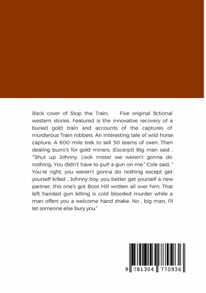 Five original fictional western stories. Featured is the innovative recovery of a buried gold train and accounts of the captures of murderous Train robbers. An interesting tale of wild horse capture. A 600 mile trek to sell 50 teams of oxen. Then dealing burro's for gold miners, (Excerpt) Big man said , '"Shut up Johnny. Look mister we weren't gonna do nothing. You didn't have to pull a gun on me." Cole said, " You're right, you weren't gonna do nothing except get yourself killed , Johnny boy, you better get yourself a new partner, this one's got Boot Hill written all over him. That left handed gun killing is cold blooded murder while a man offers you a welcome hand shake. No , big man, I'll let someone else bury you." Thanks for the read, hope you enjoy.