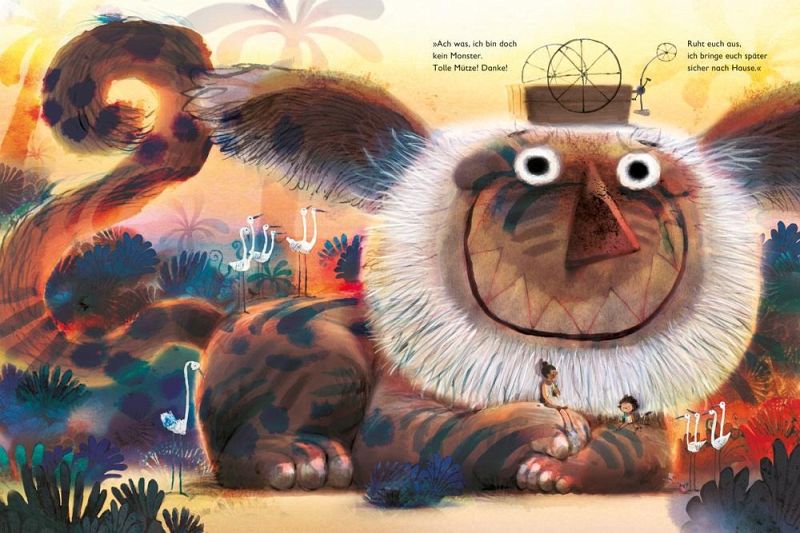 Töpfe, Pfannen, altes Eisen, ein kaputter Ofen. Da kommt so einiges zusammen als Sita und Alina ihr Haus aufräumen. Mit einem Wagen voller Zeug machen sie sich auf den Weg zum Schrottplatz. »Stopp!«, ruft da ein großes, grünes Monster und stellt sich ihnen in den Weg! Aber keine Angst! Das Monster will bloß die Töpfe und die Pfannen. Das wird die schönste Kette der Welt! Das lila Monster kann den alten Ofen gebrauchen. Ein prima Saxophon! Und auch all die anderen Monster am Wegesrand haben noch Verwendung für all die alten Sachen. Das kaputte Fahrrad taugt doch wunderbar als Brille. Wie praktisch! Als das letzte Stück ausrangierter Kram seinen Abnehmer glücklich gemacht hat, können Sita und Alina sich zufrieden ausruhen.