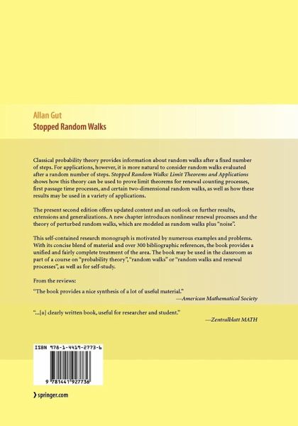 "Stopped random walks occur in sequential analysis renewal theory and queueing theory several applications are discussed in the text. ... The book under review is the second edition of a book first published in 1988 ... . lengthy bibliography from the first edition has been brought up to date. ... an excellent reference and its material is still worthy of study." (Thomas Polaski, Mathematical Reviews, Issue 2010 f)