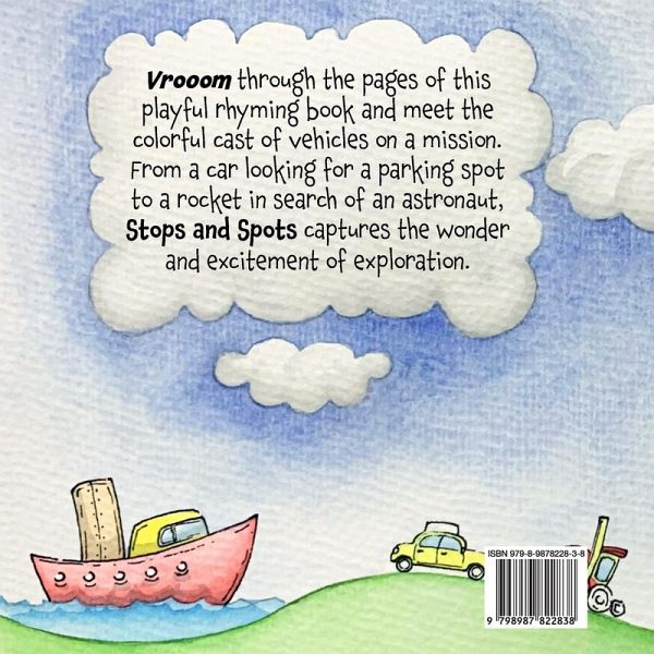 Vrooom through the pages of this playful rhyming book and meet the colorful cast of vehicles on a mission. From a car looking for a parking spot to a rocket in search of an astronaut, Stops and Spots captures the wonder and excitement of exploration.