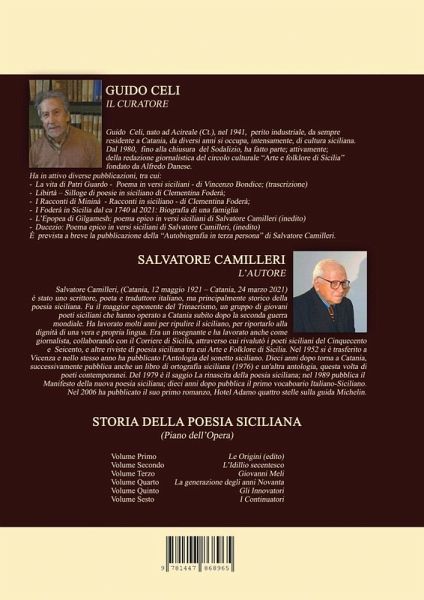 La storia della Poesia Siciliana è un'opera in sei volumi di Salvatore Camilleri curata postuma da Guido Celi. Questo primo volume dà inizio all'opera mediante l'analisi sulle origini della Poesia Siciliana e lo sviluppo nei secoli XIII - XIV - XV - XVI e comprende: La poesia del Regale Solium (Cielo d'Alcamo e Jacopo da Lentini); Da Bartolomeo Asmundo alla Barunissa di Carini (apporti dell'Università di Catania); Le Storie popolaresche; Antonio Veneziano.